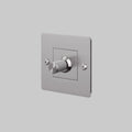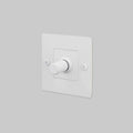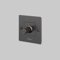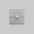Realizat integral din metal solid, acest dimmer 1G este prevăzut cu un buton rotativ decorat cu textura lineară caracteristică. Placa frontală include șuruburi metalice Torx și gravura discretă a logo-ului Buster + Punch, pentru un plus de identitate vizuală.